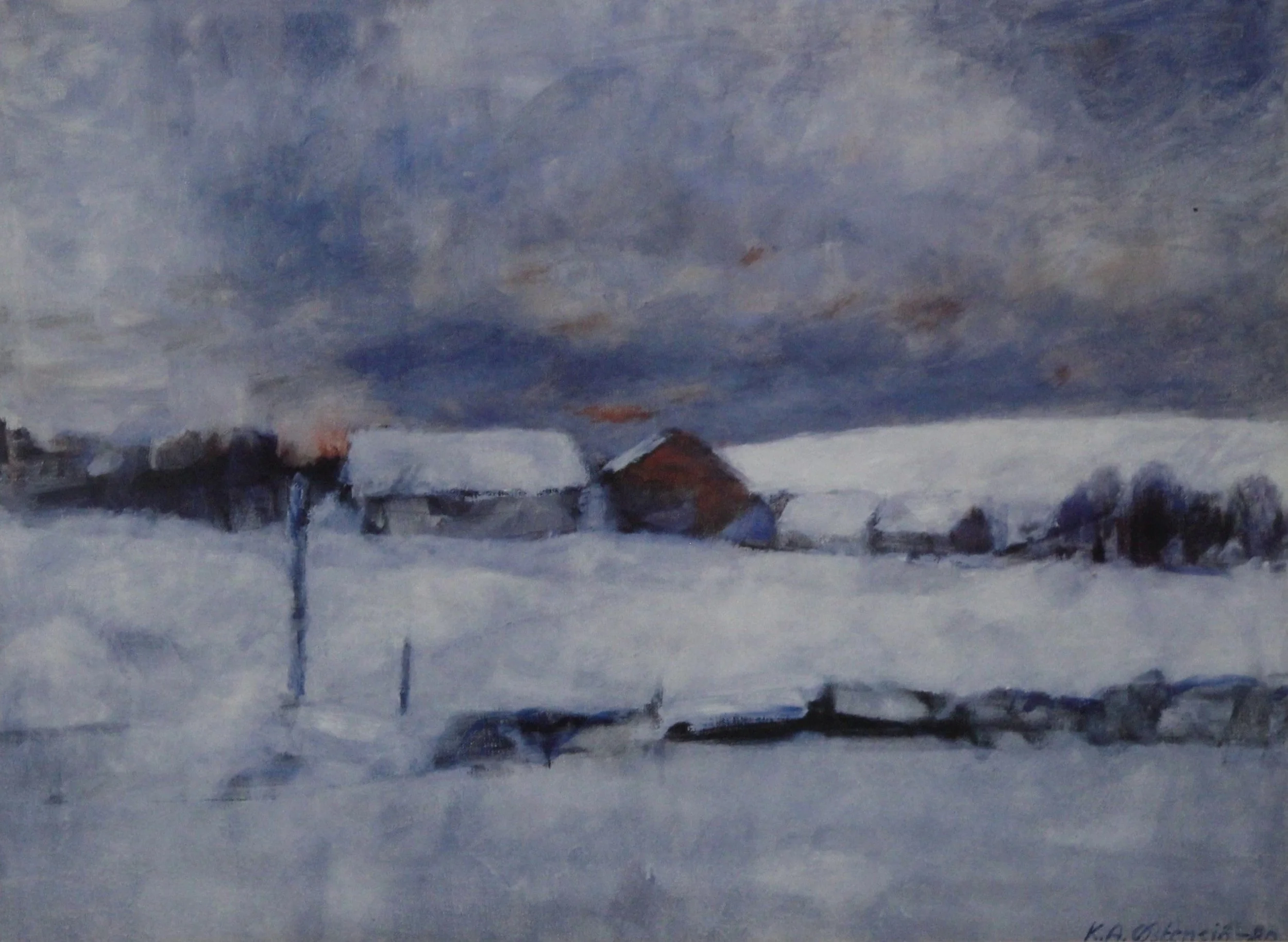 Bildet «Snelandskap» er fremstilt i et abstrahert, naturalistisk formspråk der det viktigste for kunstneren Karl Anton Østensjø har vært å skildre en atmosfærisk stemning. Blågrå skyhimmel og mye snø på markene kan vitne om et hvitt døgn. Snøen har pakket seg over steingjerder, på tak og langs med husvegger. Fargelagene er opake (dekkende) og mettede, men relativt få i antall. Den røde løeveggen skiller seg ut med sin varme karakter opp i mot dominerende blåhvite toner i landskap og himmel. Den lett impresjonistiske malemåten (penselstrøkene), teksturen, de blålige refleksene og vinterlyset kan henlede tankene til f.eks. den franske maleren Claude Monets vintermalerier fra Norge i 1895.