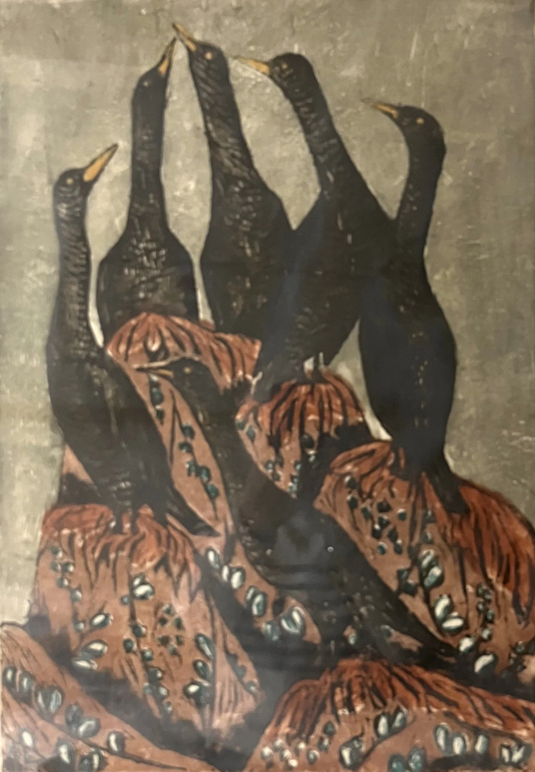 Svallaug Svalastoga: Skarveflokk, prøvetrykk, farger, 1963